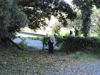 10月25日(土)新しい注連縄作りに参加されていた、市議会議員の田中陽三さんが、作業後神社下の児童遊園地の草刈りを一人でされていました。本来、この児童遊園地は光市の公園緑地課の管理です。うっそうと繁った草で設置されている珍しいステンレス製のトイレの使用も難しくなっていました。見かねた田中議員が草刈りをボランティでされていました。
