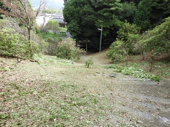 7月11日(金)連日の猛暑で、草木の成長がはやいです。神社参道横へ神社下の市児童遊園地から草木やツツジが覆い被さってきています。先日、光市の公園緑地課に、見通し等の安全面からも早急の刈り入れを自治会長と申し出ています。返答がまだですが、夏休みの前までに児童のために対策がほしいものです。
