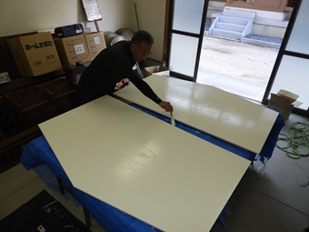 10月1日(水)来年の大型絵馬作が始まりました。今年は中学生の参加者が多く絵馬を2枚作成予定です。現在、中学校で下絵の準備が進んでいます。今日は下地を地元の岡﨑塗装さんが塗ってくれました。準備万端です。