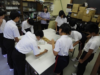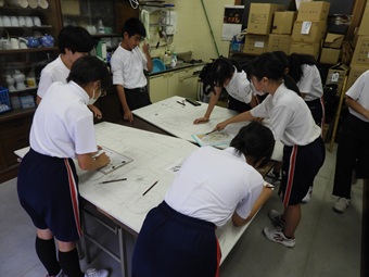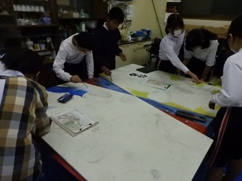 10月6日(月)大型絵馬の製作を浅江中の情報デザイン部の有志で開始しました。原案を拡大する作業から始めています。