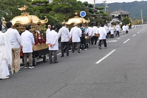 夏祭りで、神輿の御神幸がありました。各地区で巫女舞を奉納しました。