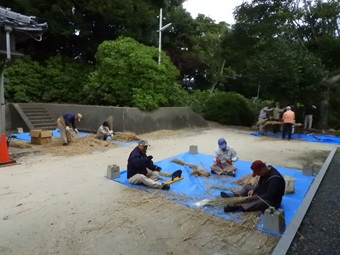 6月8日(日)午後から茅の輪を作りました。綺麗な茅で完成しました。
