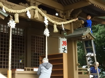 10月25日(土)今年の餅米の藁で新しい注連縄を作り、掛け替えました。