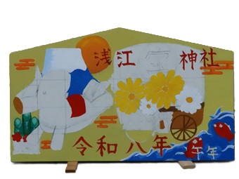 10月2日(木)大型絵馬の原案を浅江中学校の生徒が描いてくれました。責任役員を中心にその中から今年の作品を選びました。