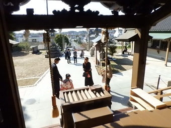 日本文化の和装に力を入れられている氏子のブライダルハウスいそべさんが写真撮影に来られました。きれいな神社や境内が新しい夫婦の写真の背景に合うと言うことで、撮影に使われています。神社も和装も後世に繋げたいものです。